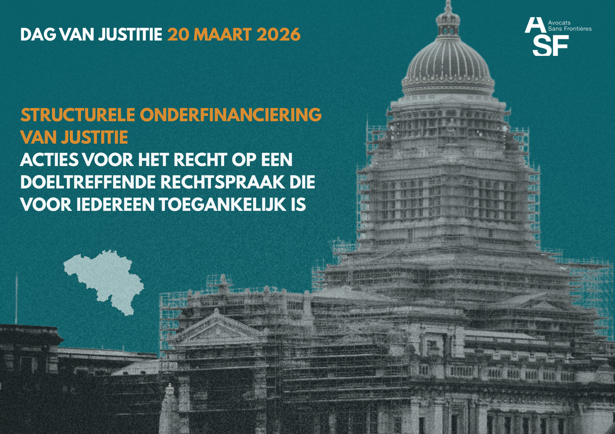 Sinds 2015 trekken advocaten, magistraten, griffiers en alle andere actoren in de justitiële sector op 20 maart aan de alarmbel. Ze stellen de structurele onderfinanciering van de Belgische justitie aan de kaak, evenals de gevolgen ervan voor de toegang tot de rechtspraak en het recht op een snel en eerlijk proces voor rechtzoekenden.
