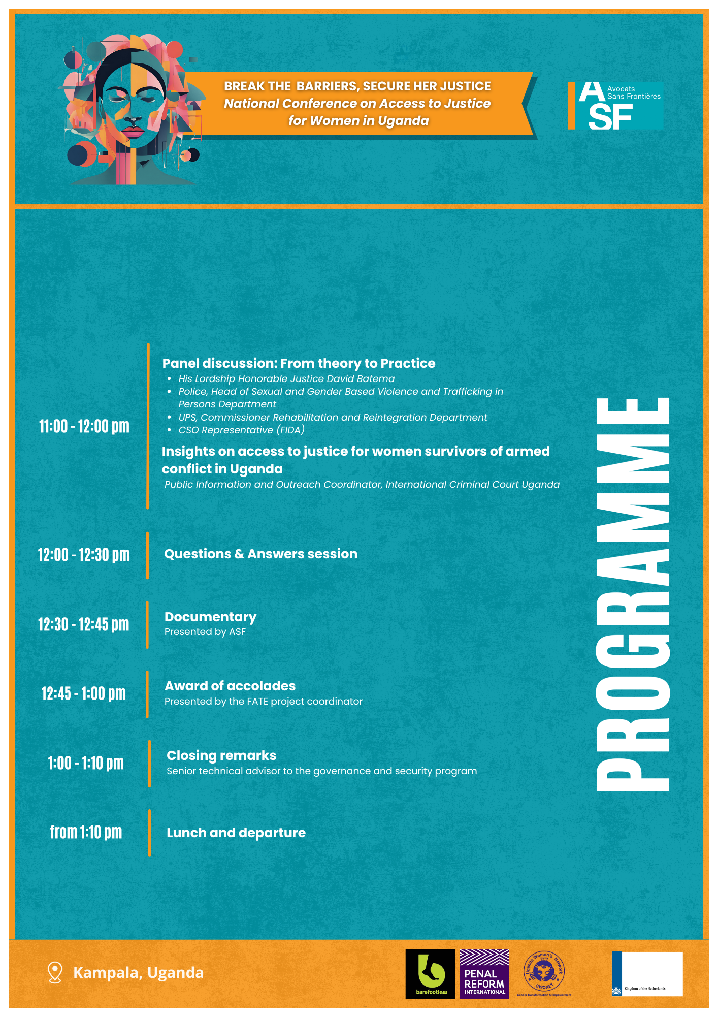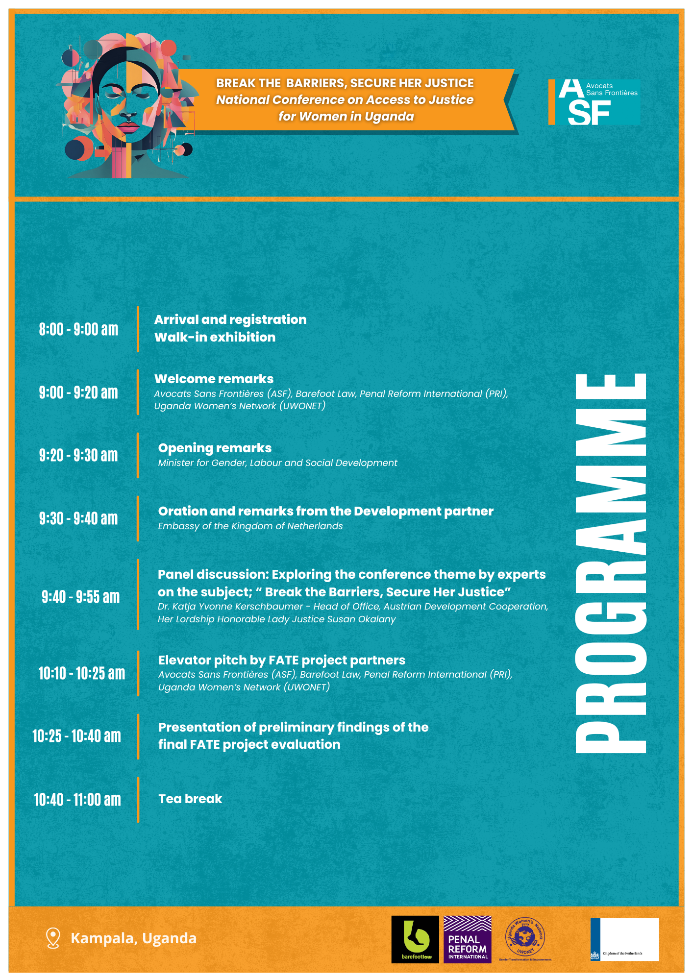 The conference, to be held in Kampala, Uganda, under the theme “Strengthening ecosystems that sustain women’s legal empowerment in an environment that serves their needs”, marks the culmination of the From Access to Equality (FATE) project – a four-year initiative funded by the Embassy of the Kingdom of the Netherlands and implemented in partnership with Uganda Women’s Network (UWONET), Penal Reform International (PRI), and BarefootLaw (BFL).